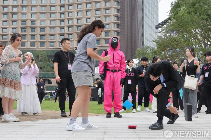 [서울=뉴스핌] 양윤모 기자 = 28일 오후 서울광장이 넷플릭스 시리즈 ‘오징어 게임 시즌 3' 기념무대로 변신한 가운데,국내외 팬들이 야간 행사를 기다리며 부대행사에 참여하고 있다. 2025.06.28 yym58@newspim.com