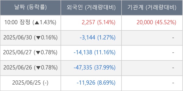 ※ 사모펀드 등 일부 기관의 순매매량은 표시되지 않음