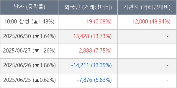 ※ 사모펀드 등 일부 기관의 순매매량은 표시되지 않음