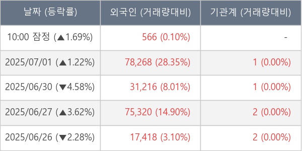 [표] 외국인ㆍ기관 순매매량 (단위 주)