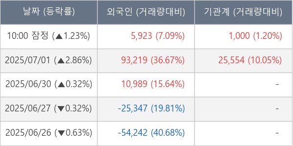 ※ 사모펀드 등 일부 기관의 순매매량은 표시되지 않음