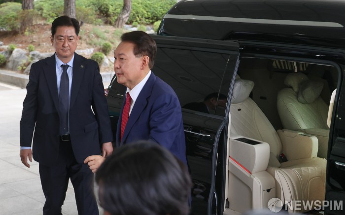 [서울=뉴스핌] 최지환 기자 = 윤석열 전 대통령이 5일 오전 서울 서초구 서울고검 청사에 마련된 '내란 특검' 사무실에 피의자 신분으로 출석하고 있다. 2025.07.05 choipix16@newspim.com