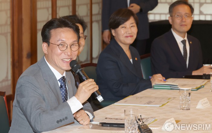 [서울=뉴스핌] 양윤모 기자 = 6일 서울 삼총동 총리공관에서 열린 제1차 고위당정협의회에서 김민석 국무총리가 발언하고 있다. [공동취재] 2025.07.06 yym58@newspim.com