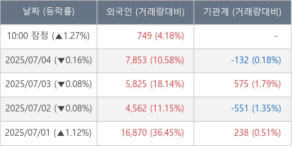 [표] 외국인ㆍ기관 순매매량 (단위 주)