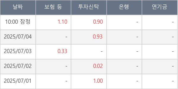 [표] 주요 기관별 순매매량 (단위 만주)