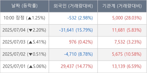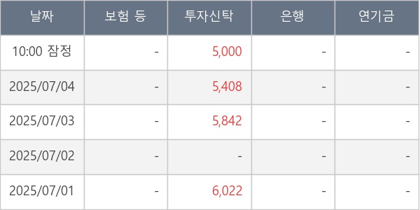 [표] 주요 기관별 순매매량 (단위 주)