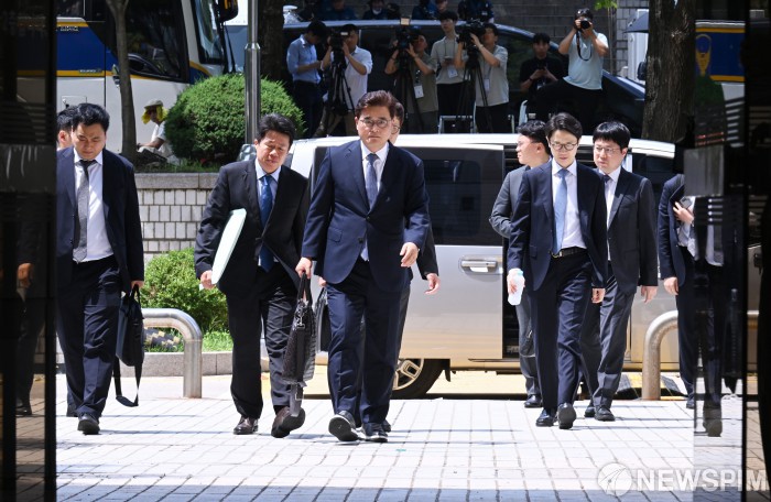 [서울=뉴스핌] 사진공동취재단 = '12·3 비상계엄' 관련 내란·외환 사건을 수사하는 조은석 내란 특별검사팀 박억수 특검보가 9일 오후 서울 서초구 서울중앙지방법원에서 열린 윤석열 전 대통령의 구속 전 피의자 심문을 위해 법원에 들어서고 있다. 2025.07.09 photo@newspim.com