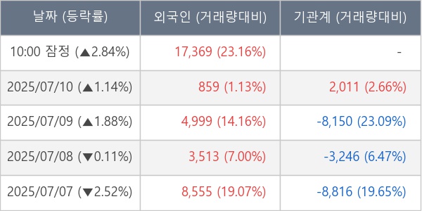 [장중수급포착] 한양이엔지, 외국인 8일 연속 순매수행진... 주가 +2.84%