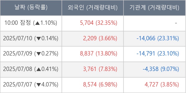 [표] 외국인ㆍ기관 순매매량 (단위 주)