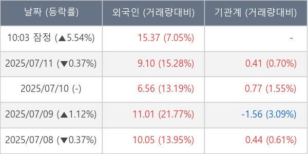 [표] 외국인ㆍ기관 순매매량 (단위 만주)