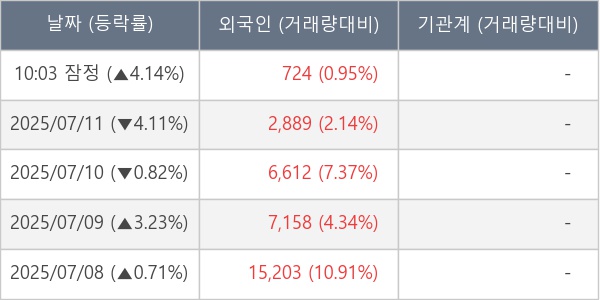 [표] 외국인ㆍ기관 순매매량 (단위 주)