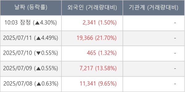 [표] 외국인ㆍ기관 순매매량 (단위 주)