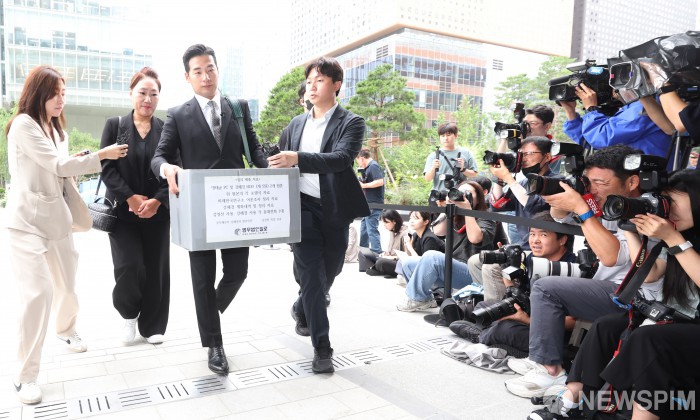 [서울=뉴스핌] 김학선 기자 = 윤석열 전 대통령 부부와 정치브로커 명태균 씨의 공천개입 의혹을 최초 제보한 강혜경 씨가 16일 오전 참고인 조사를 받기 위해 서울 종로구 KT광화문빌딩 웨스트에 마련된 김건희 특검 사무실로 출석하고 있다. 2025.07.16 yooksa@newspim.com