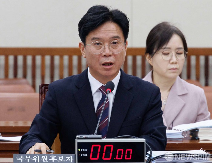 [서울=뉴스핌] 윤창빈 기자 = 김영훈 고용노동부 장관 후보자가 16일 오전 서울 여의도 국회에 환경노동위원회 전체회의에서 열린 인사청문회에서 의원 질문에 답변하고 있다. 2025.07.16 pangbin@newspim.com