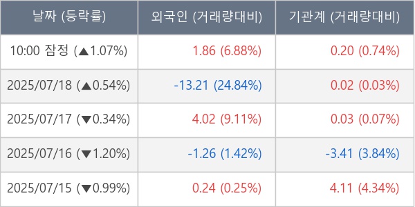 ※ 사모펀드 등 일부 기관의 순매매량은 표시되지 않음