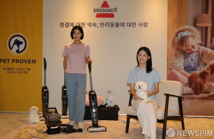 [서울=뉴스핌] 양윤모 기자 = 150년 전통의 미국 반려동물 맞춤 홈클리닝 전문 브랜드 '비쎌(BISSELL)'이 한국 법인 공식 출범을 알리는 사진행사를 22일 오전 서울 중구 더플라자 호텔 4층 오키드홀에서 ‘크리스 쳉’ 비쎌 아시아 총괄이 참석한 가운데 개최했다. 2025.07.22 yym58@newspim.com