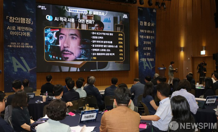 [서울=뉴스핌] 양윤모 기자 = 22일 오전 시청 8층 다목적홀에서 오세훈 서울시장이 참석한 가운데 '창의행정 AI로 제안하는 아이디어톤' 행사가 개최 되었다. 2025.07.22 yym58@newspim.com