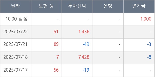 [표] 주요 기관별 순매매량 (단위 주)