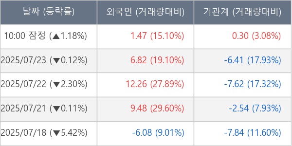 ※ 사모펀드 등 일부 기관의 순매매량은 표시되지 않음