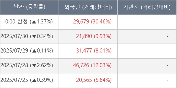 [표] 외국인ㆍ기관 순매매량 (단위 주)