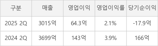 ◆ 2Q, 매출 3015억 전년동기 대비 19% 감소... 영업이익률 상승전환