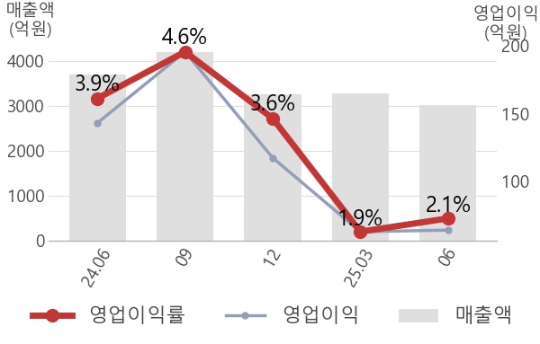 [서울=뉴스핌] 로보뉴스 = 하락하던 파트론의 영업이익률이 2분기만에 상승세로 돌아왔다. 24년 09월 4.6%이던 영업이익률은 지속적으로 하락하여 25년 03월 1.9%까지 떨어졌지만 이번 분기에 2.1%로 상승하면서 개선된 모습을 보이고 있다.