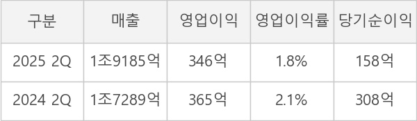 ◆ 2Q 실적, 매출액 1조9185억원 전년동기 대비 11% 증가... 영업이익 5.1% 감소