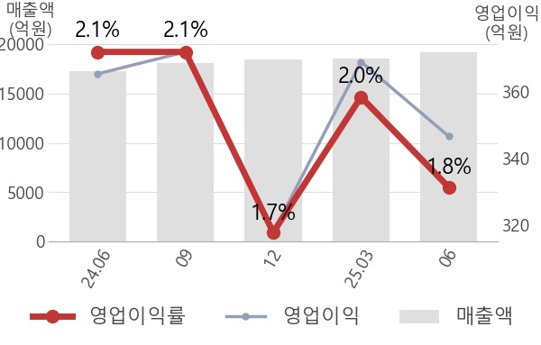 [서울=뉴스핌] 로보뉴스 = 현대코퍼레이션의 영업이익률이 전년동기 대비하여 0.3%p 감소하였다. 24년 06월 2.1%이던 영업이익률이 이번 분기에 하락하여 1.8%를 기록하였다.