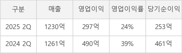 ◆ 2Q 실적, 영업이익 297억원 전년동기 대비 39% 감소
