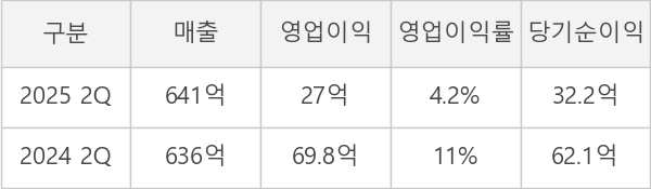 ◆ 2Q 실적, 영업이익 27억원 전년동기 대비 61% 감소