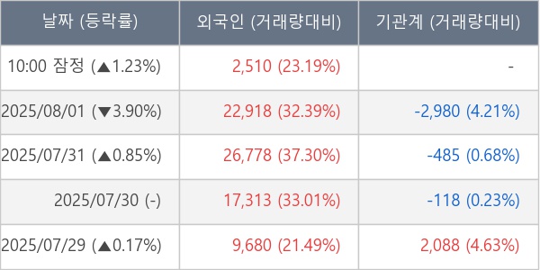[표] 외국인ㆍ기관 순매매량 (단위 주)