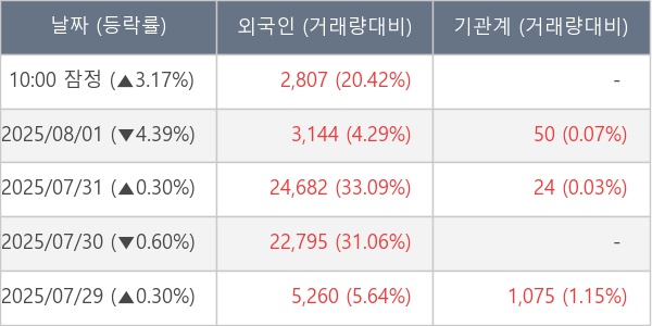 [표] 외국인ㆍ기관 순매매량 (단위 주)