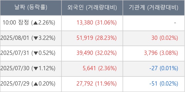 [표] 외국인ㆍ기관 순매매량 (단위 주)