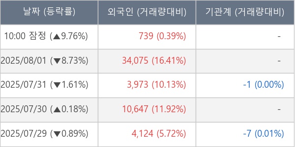 [표] 외국인ㆍ기관 순매매량 (단위 주)