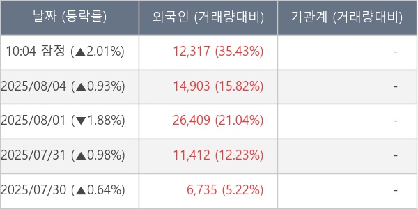 [표] 외국인ㆍ기관 순매매량 (단위 주)
