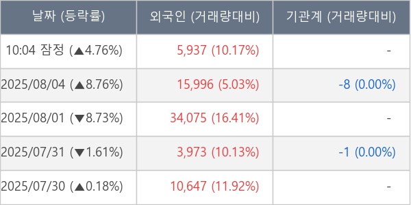 [표] 외국인ㆍ기관 순매매량 (단위 주)