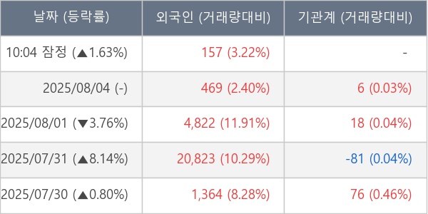 [표] 외국인ㆍ기관 순매매량 (단위 주)