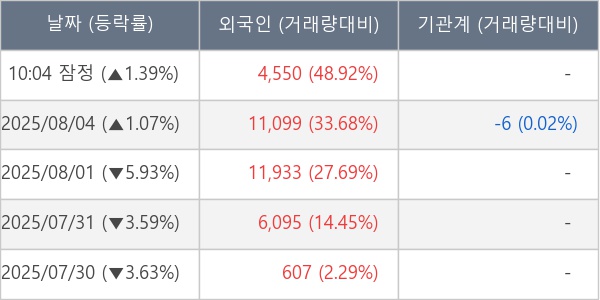 [표] 외국인ㆍ기관 순매매량 (단위 주)