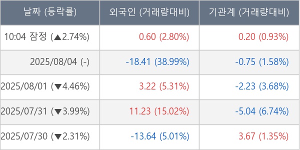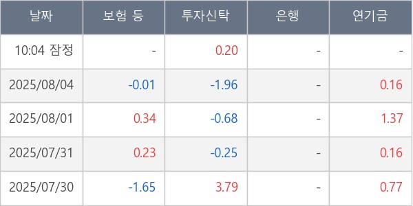 [표] 주요 기관별 순매매량 (단위 만주)
