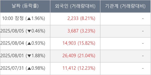 [표] 외국인ㆍ기관 순매매량 (단위 주)