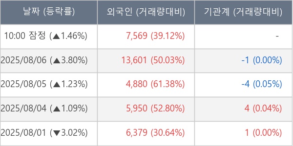 [표] 외국인ㆍ기관 순매매량 (단위 주)