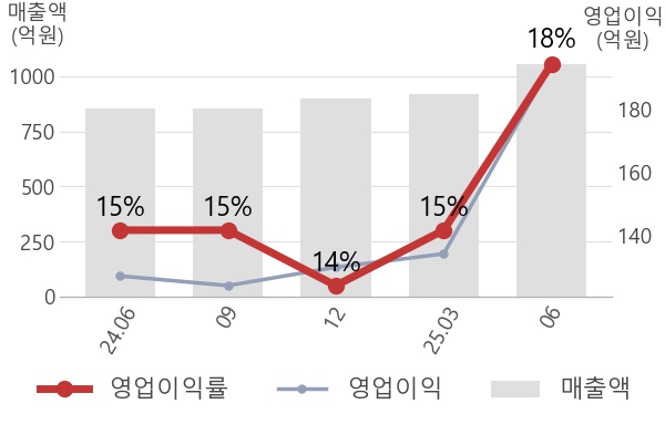 [서울=뉴스핌] 로보뉴스 = 펌텍코리아의 영업이익률이 전년동기 대비하여 3.0%p 증가하였다. 24년 06월 15%이던 영업이익률이 이번 분기에 상승하여 18%를 기록하였다.