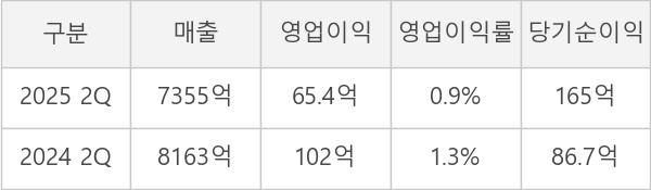 ◆ 2Q 실적, 영업이익 65.4억원 전년동기 대비 36% 감소... 매출액 9.9% 감소