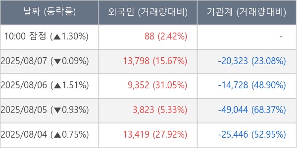 [표] 외국인ㆍ기관 순매매량 (단위 주)