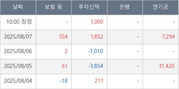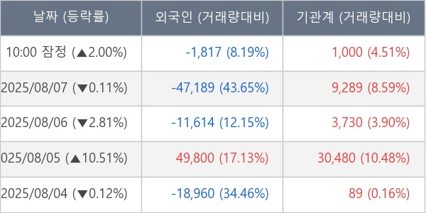 [표] 주요 기관별 순매매량 (단위 주)
