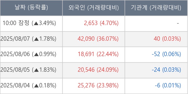 [표] 외국인ㆍ기관 순매매량 (단위 주)