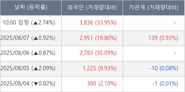 [표] 외국인ㆍ기관 순매매량 (단위 주)