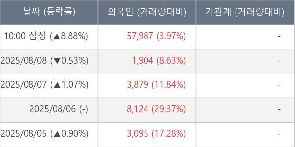 [표] 외국인ㆍ기관 순매매량 (단위 주)
