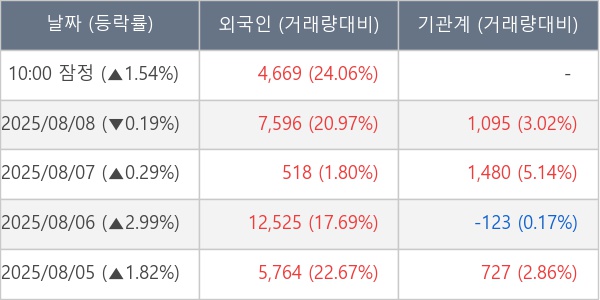 [표] 외국인ㆍ기관 순매매량 (단위 주)