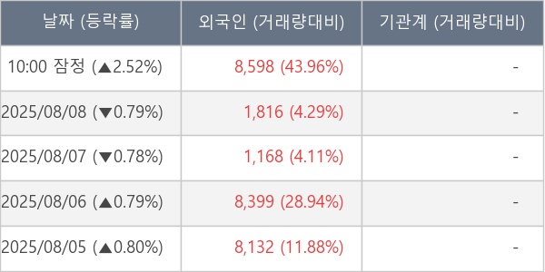 [표] 외국인ㆍ기관 순매매량 (단위 주)
